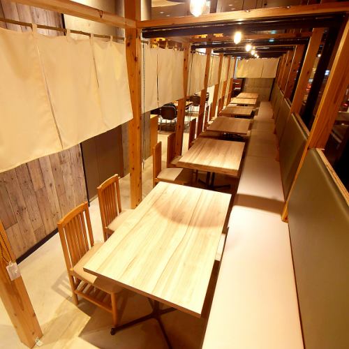 こちらのテーブル席は最大15名様程度までお座りになれます。周りと区切られた空間なので快適ですよ♪名古屋飯・三陸魚介が美味しいお店が豊田市駅にOPEN!!女子会コースも人気です♪豊田で幹事様必見の居酒屋です♪